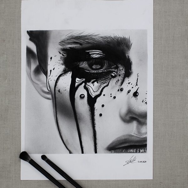 אור המהממת שציירה את הציור הזה תוך 2 שיעורים בלבד ואין לה ידע קודם עם אבקה ומברשות פחם ותראו כמה רגש אפשר להוציא ואיזה ריפוי אפשר להעביר דרך הדף בשיעור אחד